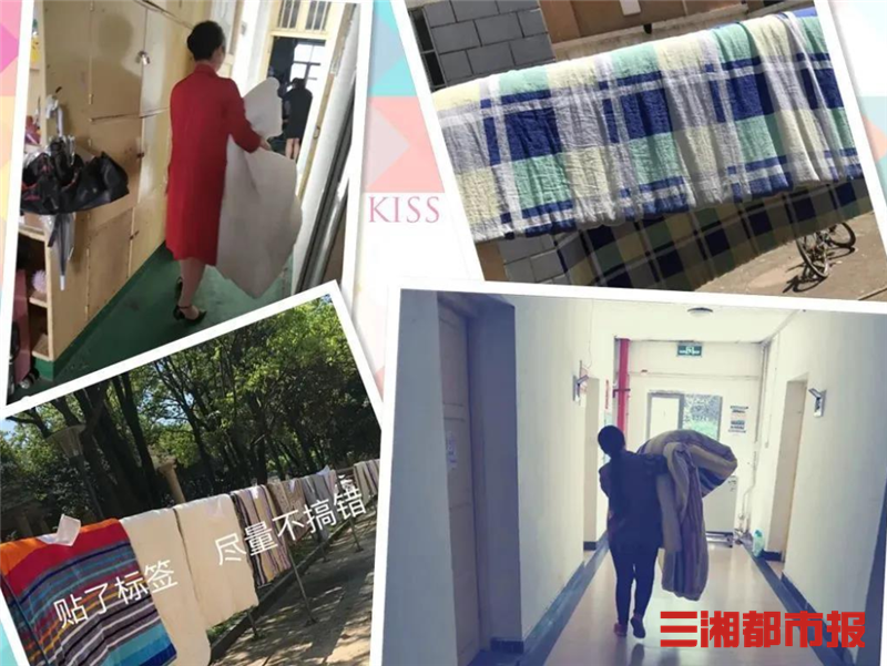 “我答应过孩子们,一定不让他们的被子发霉。”四月以来,每到天气放晴,宿管何老师就会来到学校,挨个把同学们的被子晾到外面的晒衣杆上。“天气好的时候,晒半天基本上可以了,被子晒蓬松了再收走放回柜子里,这样就不怕受潮了。”何老师说。为了不把同学们的被子弄混,她还自制了小标签,挨个夹在被子上。
