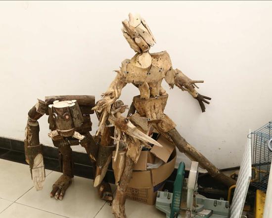 然而原木艺术光有灵感和触觉是远远不够的,好的想法必须有过硬的技术支持,而这又正是杨刚教授团队的强项。他们精诚合作,对捡来的材料进行简单处理,通过切割重组,用一个个的小小钻孔连接固定,将创意变成现实,将废木打造成艺术品。