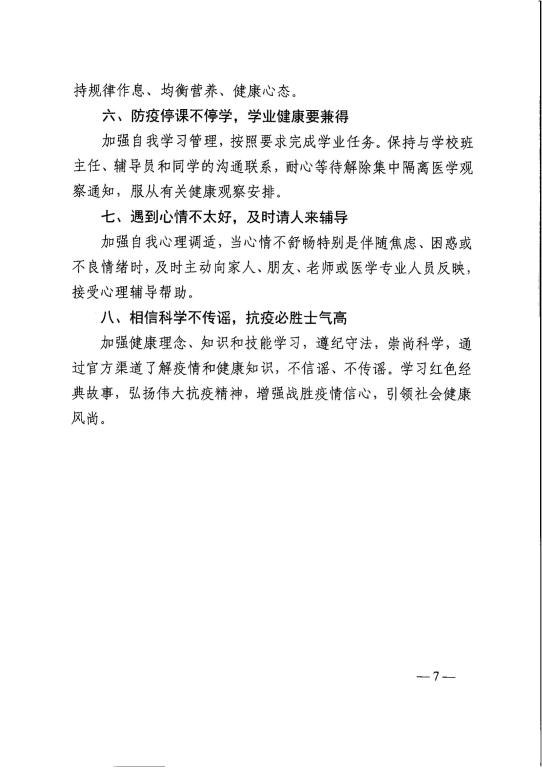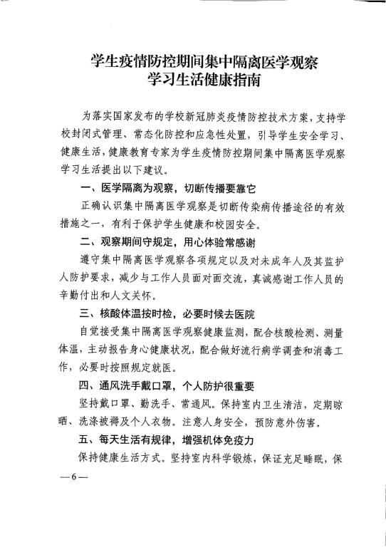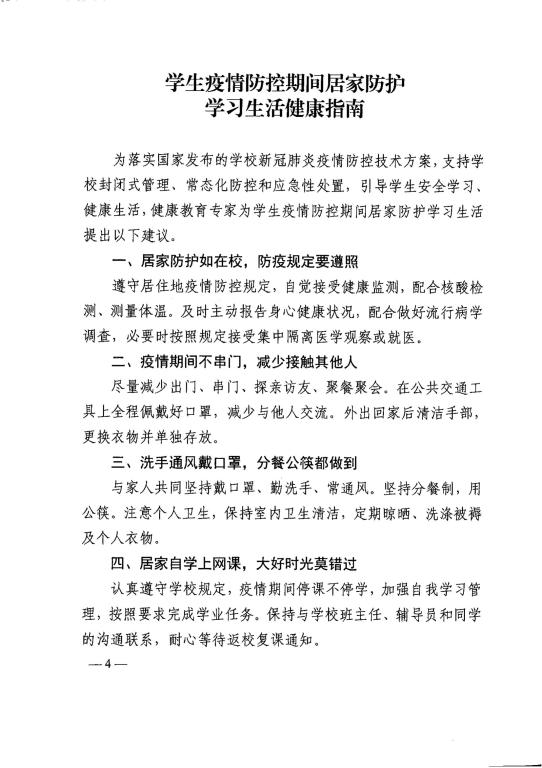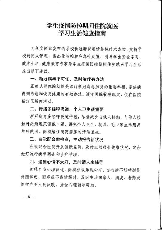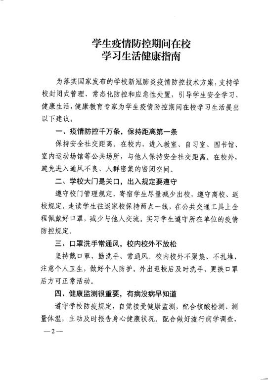 教育部办公厅关于印发学生疫情防控期间 学习生活健康指南的通知