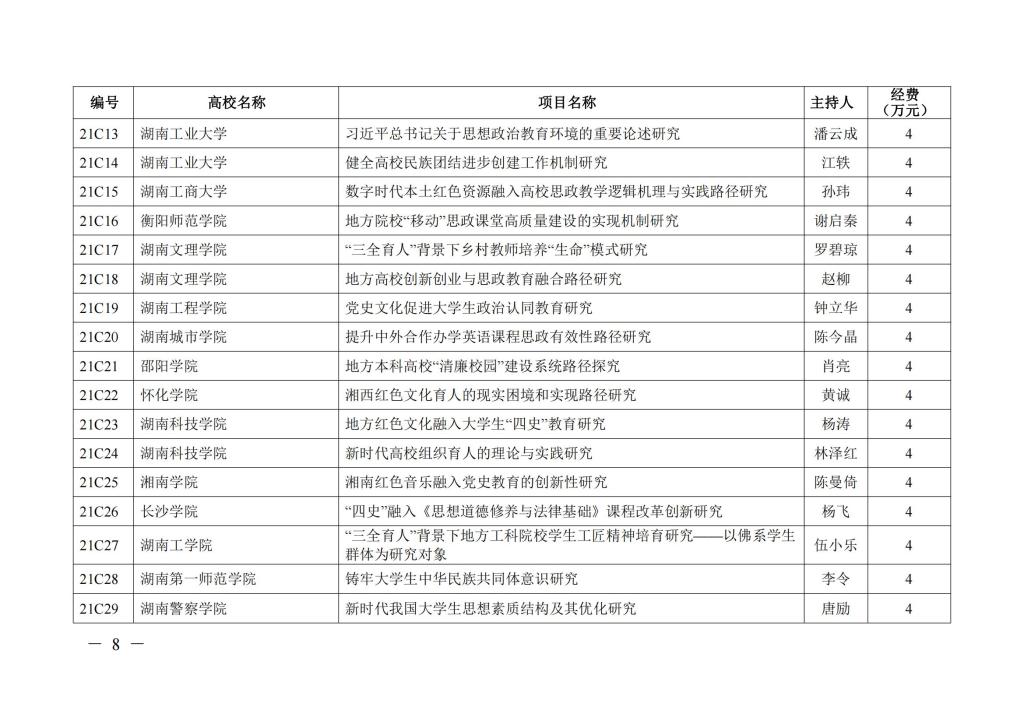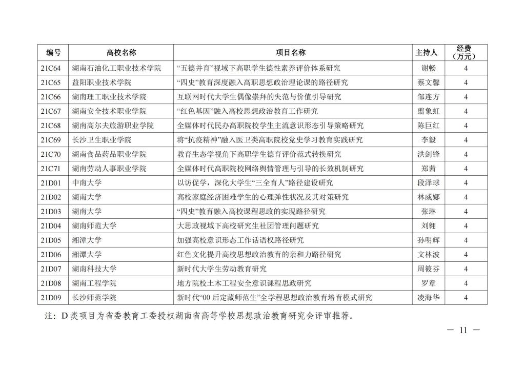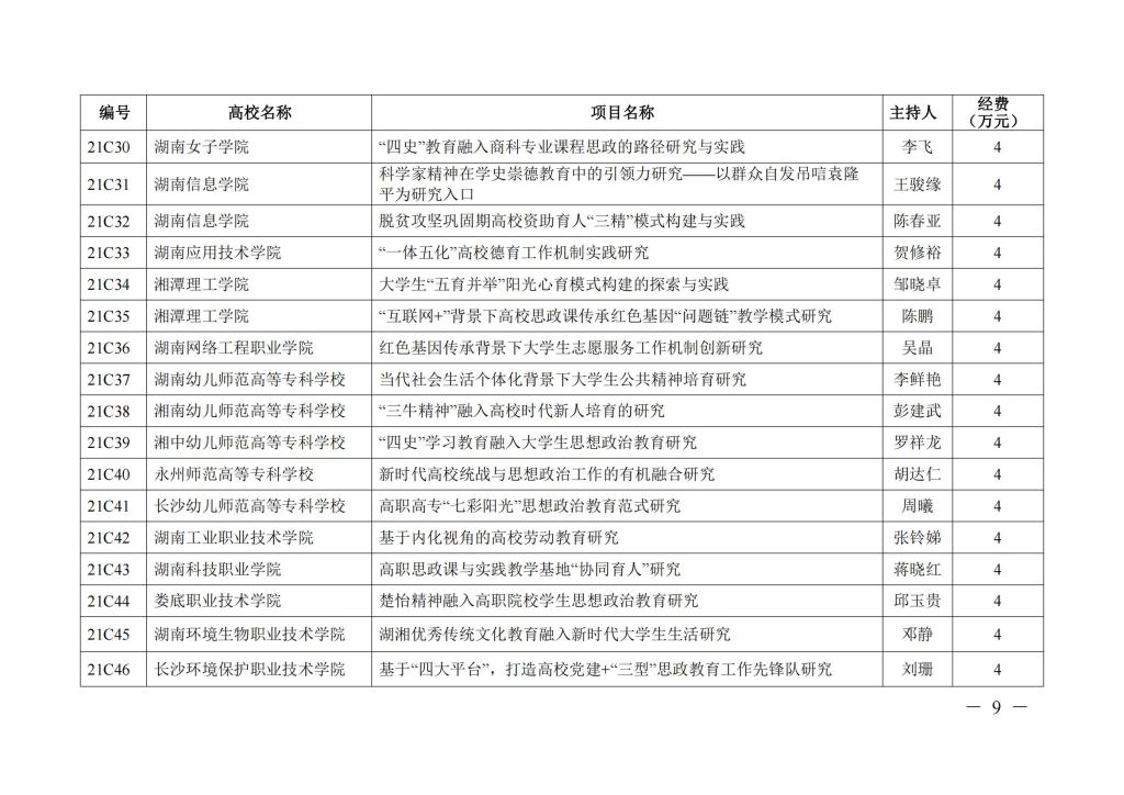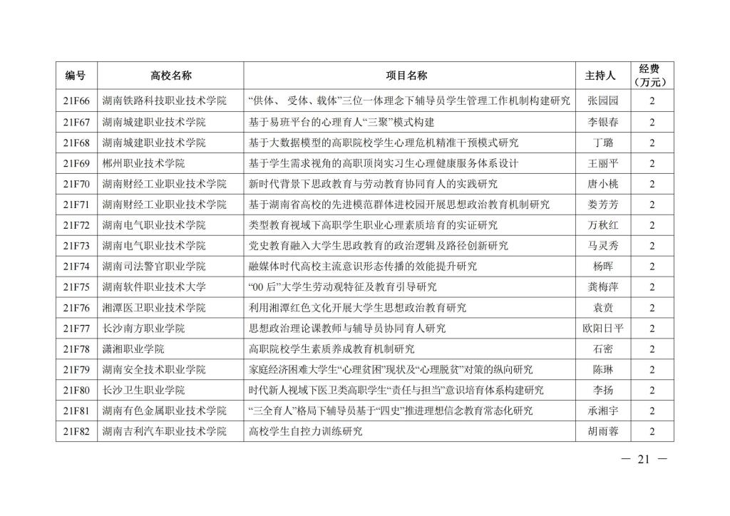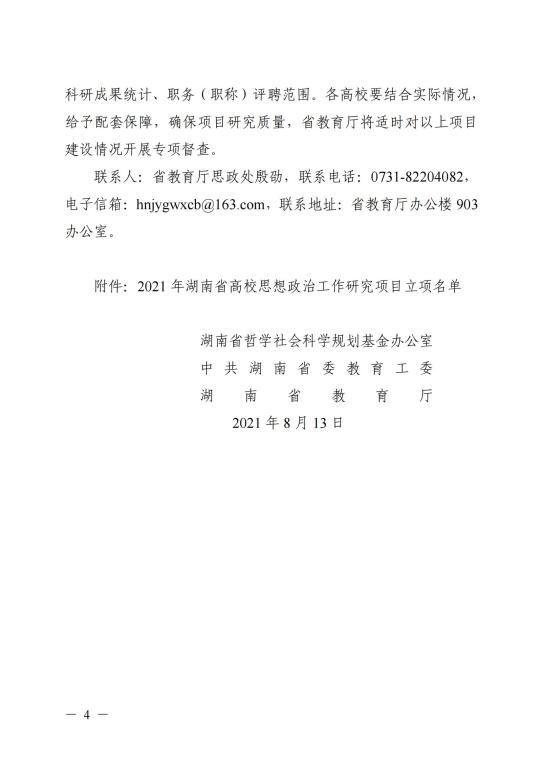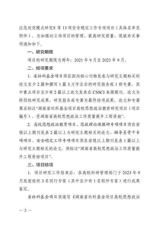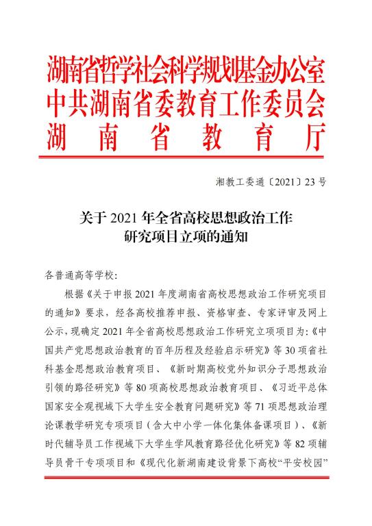 关于 2021 年全省高校思想政治工作研究项目立项的通知