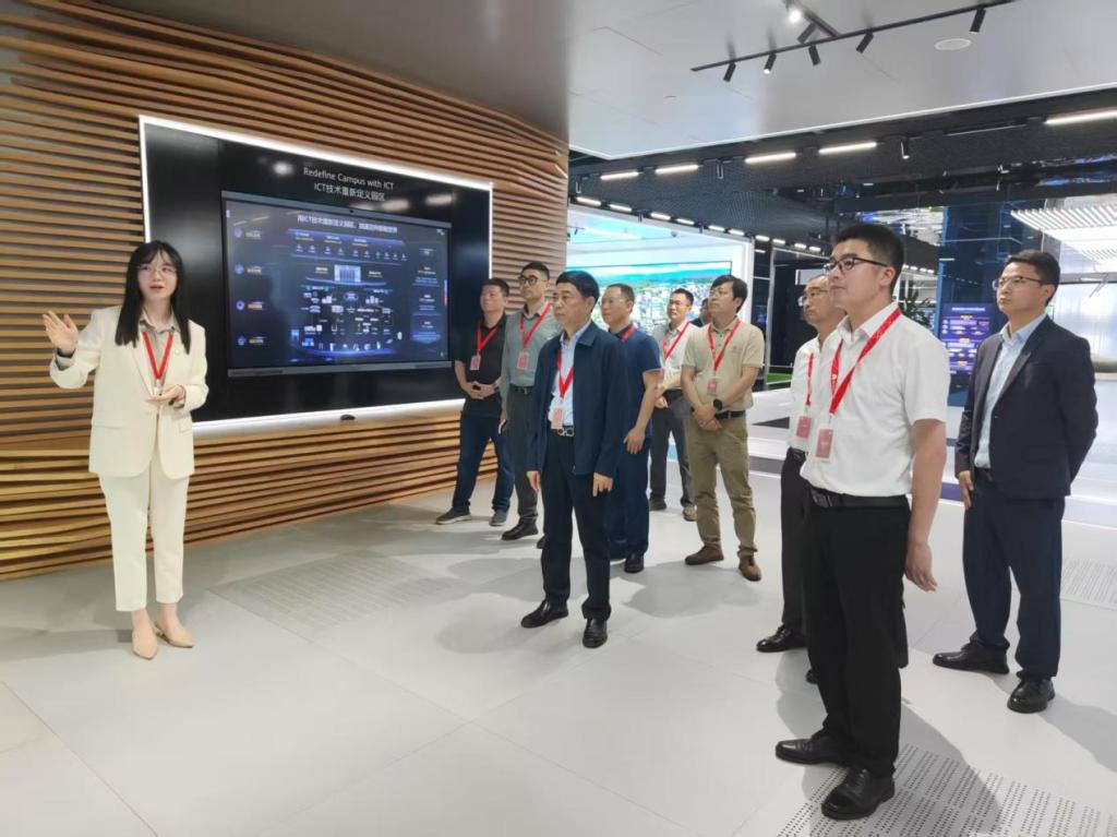 在华为公司相关负责人的陪同下,王耀中校长一行参观了华为松山湖研发中心和企业业务香农展厅,深入了解华为在5G、人工智能、云计算等前沿领域的技术研发成果和创新应用,以及华为的企业文化和发展历程。华为在科技创新方面的卓越成就和强大实力给考察团留下了深刻印象。