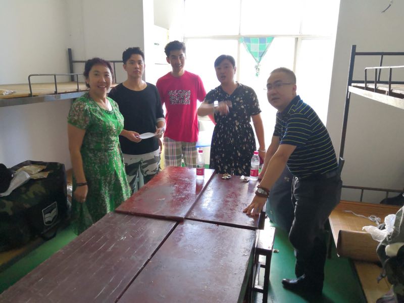 在寝室了解了新生家庭情况,查看了宿舍环境后,刘勇院长又回到迎新大厅,同迎新工作人员并肩战斗在一线,为每一位到来的新生送上由衷的欢迎。新生报到的高潮渐落,刘勇院长仍然没有离开,他来到志愿者们中间,穿行在各个岗位,为他们的工作送上积极的建议,亲自指导示范更好的工作方式方法,力求让新生们在第一天来涉外便有家的感觉。一转眼,夕阳染红了校园的天空,刘院长却还未回家,他和同学生家长们热切地攀谈,对于家长们提出的一些问题和疑惑,不厌其烦地给予他们最全面的回答。晚上,刘院长第三次来到新生寝室,对插空寝室物品是否清理到位进行重点核查,对还存在的问题进行现场解决。作为父亲的他,能深深体会到新生父母们的心情,所以,他用自己的行动向家长们宣告:涉外的学生都是学校的孩子,涉外的教师都有着一颗拳拳父母心,把孩子留在涉外,你们放心吧!