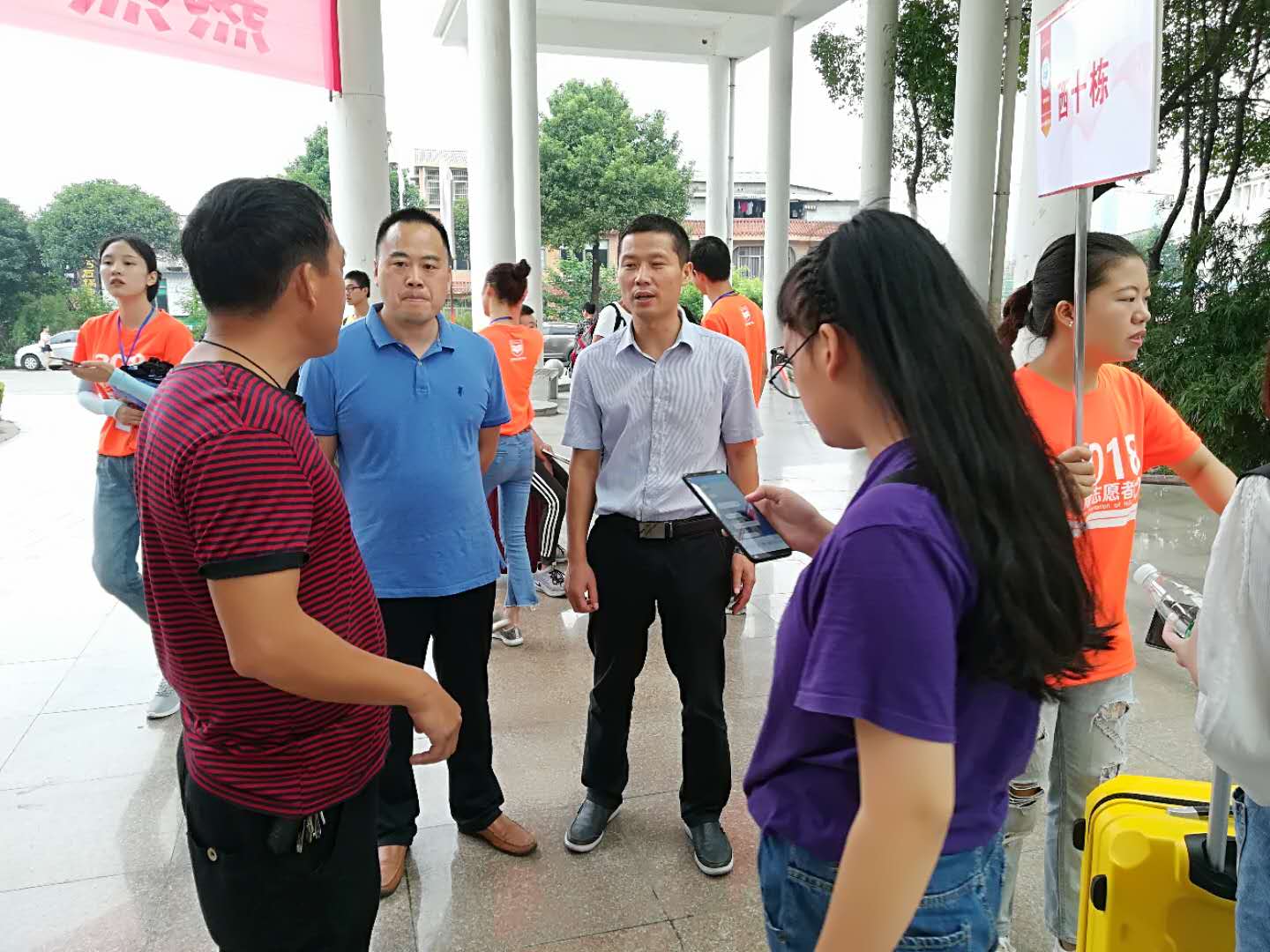 在涉外迎新现场,还有很多这样的院长,他们有着不同的风格,却都是一样的学识渊博、爱岗敬业、爱生如子。商学院王涛生院长随时与志愿者交流了解报到情况,管理学院禹海慧副院长鼓励学生利用大学时光获得真才实学,体育学院刘雪勇院长走访新生寝室并现场解决问题,艺术设计学院陈祥杰院长亲自嘱咐新生注意防盗防骗……正是由于这样一批具有爱生情怀的院长们,在开学第一天便赢得了新生的归属感和家长的认同感。(陈嘉嘉)