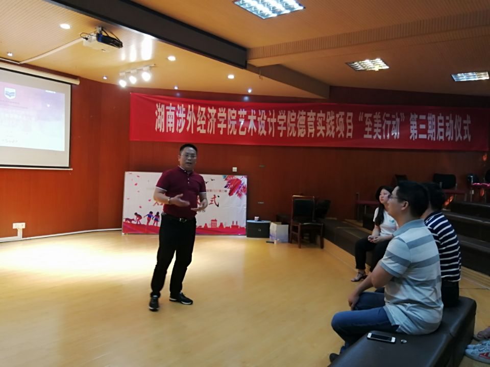 7月14日,艺术设计学院“至美行动”启动仪式在艺术楼举行,学校副校长鞠晨曦亲临启动仪式现场,并以“学习体验”为主题发表了简单的演讲。鞠校长说:学习的内涵可以外延扩展,学习不仅是在教室里学习书本和理论知识,还应该在实践中体验学习。至美行动,深入农村,介入社会,体验生活,关爱他人,是投身公益的行动,既是一种奉献,更是一种体验式的实践学习。鞠校长叮嘱志愿者要好好把握和珍惜这次体验式的学习机会,切记不以高高在上的施予者心态,而是以学习的心态支教。艺术设计学院院长陈祥杰和党总支书记熊继承分别在启动仪式上发表讲话,殷切希望志愿者团队能出色完成支教任务,为团队添彩、为学校争光,在赋予爱的同时也提高自己赋予爱的能力。