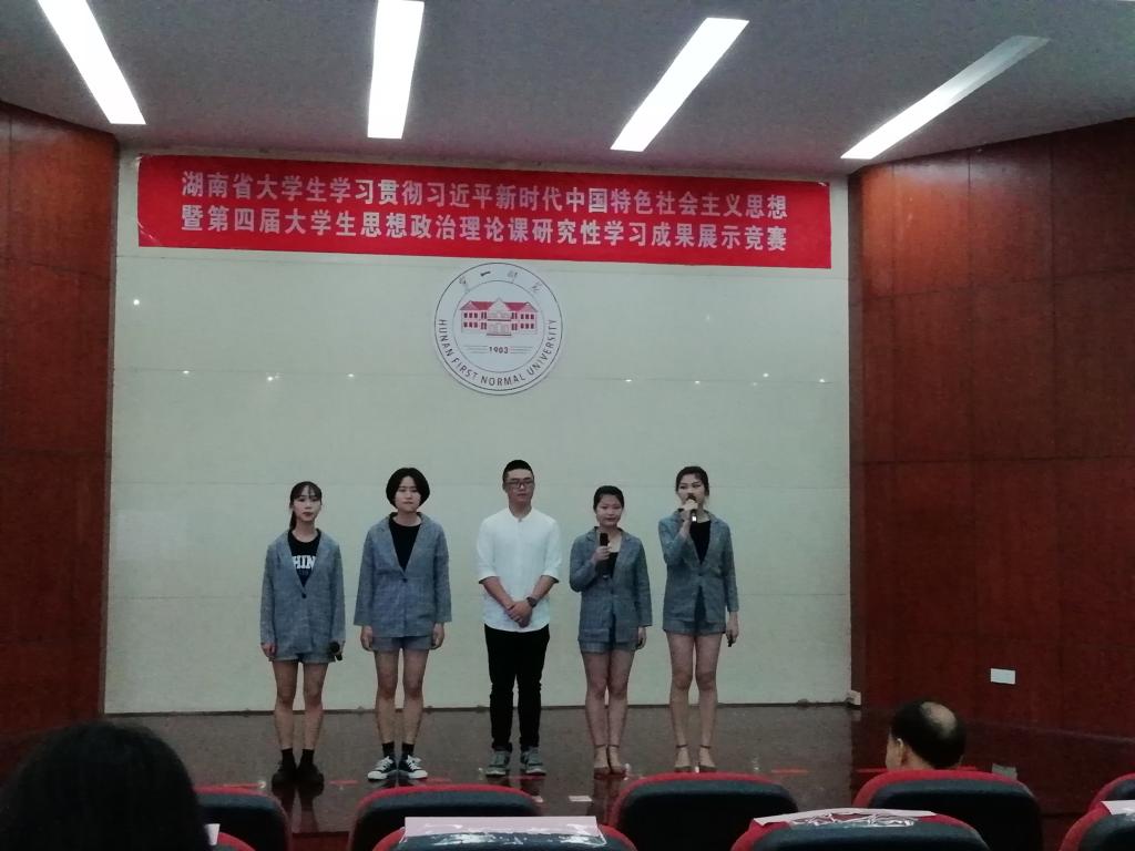 为深入学习宣传党的十九大精神及2018年全国两会精神,推动习近平新时代中国特色社会主义思想的“三进”工作,进一步激发大学生的理论学习积极性,加大思想政治理论课教学改革力度,提高思想政治理论课教学实效性,根据湘教通[2018]131号《关于开展湖南省大学生学习贯彻习近平新时代中国特色社会主义思想暨第四届大学生思想政治理论课研究性学习成果展示竞赛的通知》精神,2018年4月,全省各高校全面启动了大学生学习贯彻习近平新时代中国特色社会主义思想暨第四届大学生思想政治理论课研究性学习成果展示竞赛活动。此次竞赛活动分本科组和高职高专组,赛程分初赛、复赛和决赛,初赛由各高校自行组织,本科组复赛和决赛由湖南第一师范学院承办。