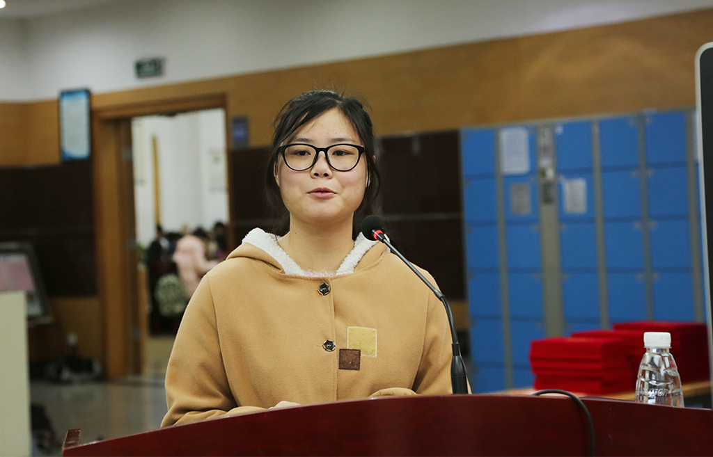 学生代表唐晴分享了她的阅读心得,她表示:图书馆是最棒的地方,通过参与阅读推广大赛,不但改变了自己的很多观念,学到了很多和书有关的知识和技能,而且还交到了不少新朋友,领略到了图书馆老师们的学识和风采。