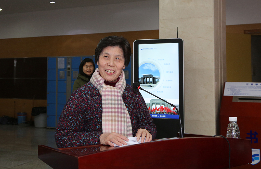 在这个下着阴冷小雨的冬日,图书馆大厅却是明亮温馨、书香荡漾。白解红副校长的致辞更是如同春风,温和中透着力量,让学子们深受启发和激励。她向此次在读书推广活动中获奖的同学表示由衷的祝贺,鼓励大家要发扬成绩,多多读书,并表示自己将一如既往加强与有关部门负责人在促进学校读书工作上的探讨,让今后的读书活动开展得更加有声有色。白解红副校长提出“读书是一种责任与担当”,她表示,阅读是一件愉快的事,大学生读书则要将乐趣变成“必需”,“必需”便意味着责任与担当。人生只有体味了负责任的苦处,才知尽责任的乐趣,一旦获得,便能感到幸福。阅读从来没有像今天这样受到全社会的关注,阅读不完全是充实自身,也能培养社交能力,让自身变得理性、成熟、有担当,更是人类为了生存、培养竞争能力必为之事业,这才是读书的真谛。因此,同学们要树立起为中华民族崛起而读书、为实现中华民族伟大复兴的中国梦而读书的观念,把阅读作为终身事业,不断增强自身力量,为国家做贡献。白解红副校长最后提出了三点希望:建立鼓励读书的长效机制,避免形式化,让更多的人加入读书活动;推广数字阅读,探索好的方式方法;把握读书活动的时效性,让读者有更多的获得感。
