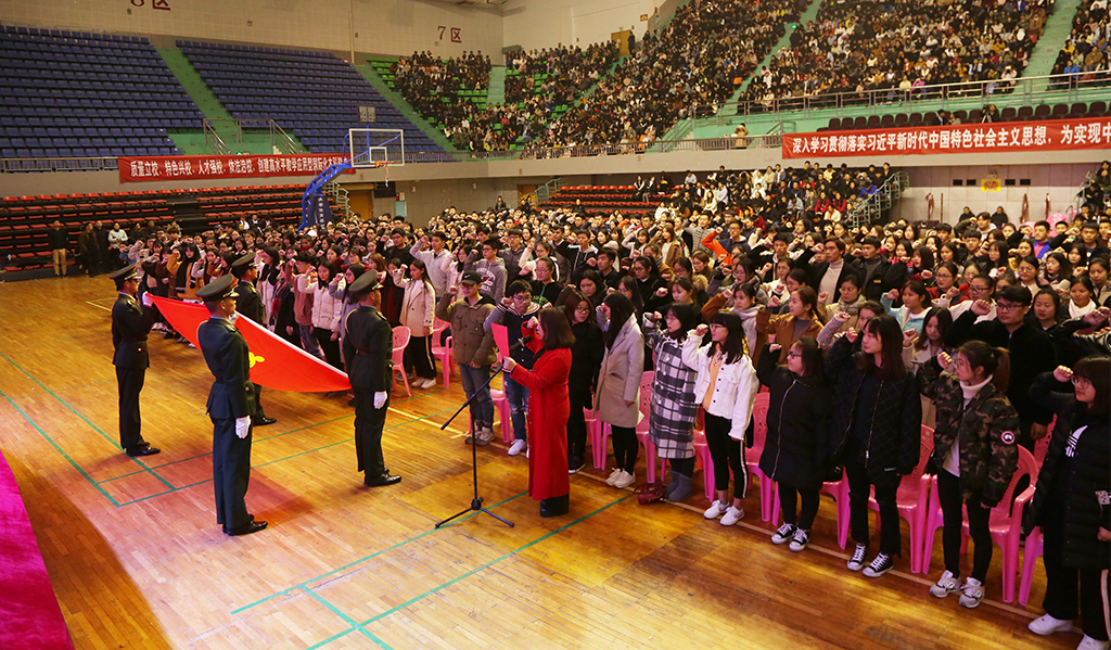 12月27日晚7点,今年会jinnian官网党校第38期入党积极分子结业典礼暨2017年下半年新党员宣誓大会在体育馆隆重举行。校党委书记柴世钦、副校长余孟辉、党委委员陈杏生、党委工作部部长李琼等领导出席了会议。各二级学院党总支书记、副书记,各直属支部书记,第38期入党积极分子培训班学员以及本学期发展的新党员和预备党员等三千余人参加了此次会议。会议由余孟辉副校长主持。