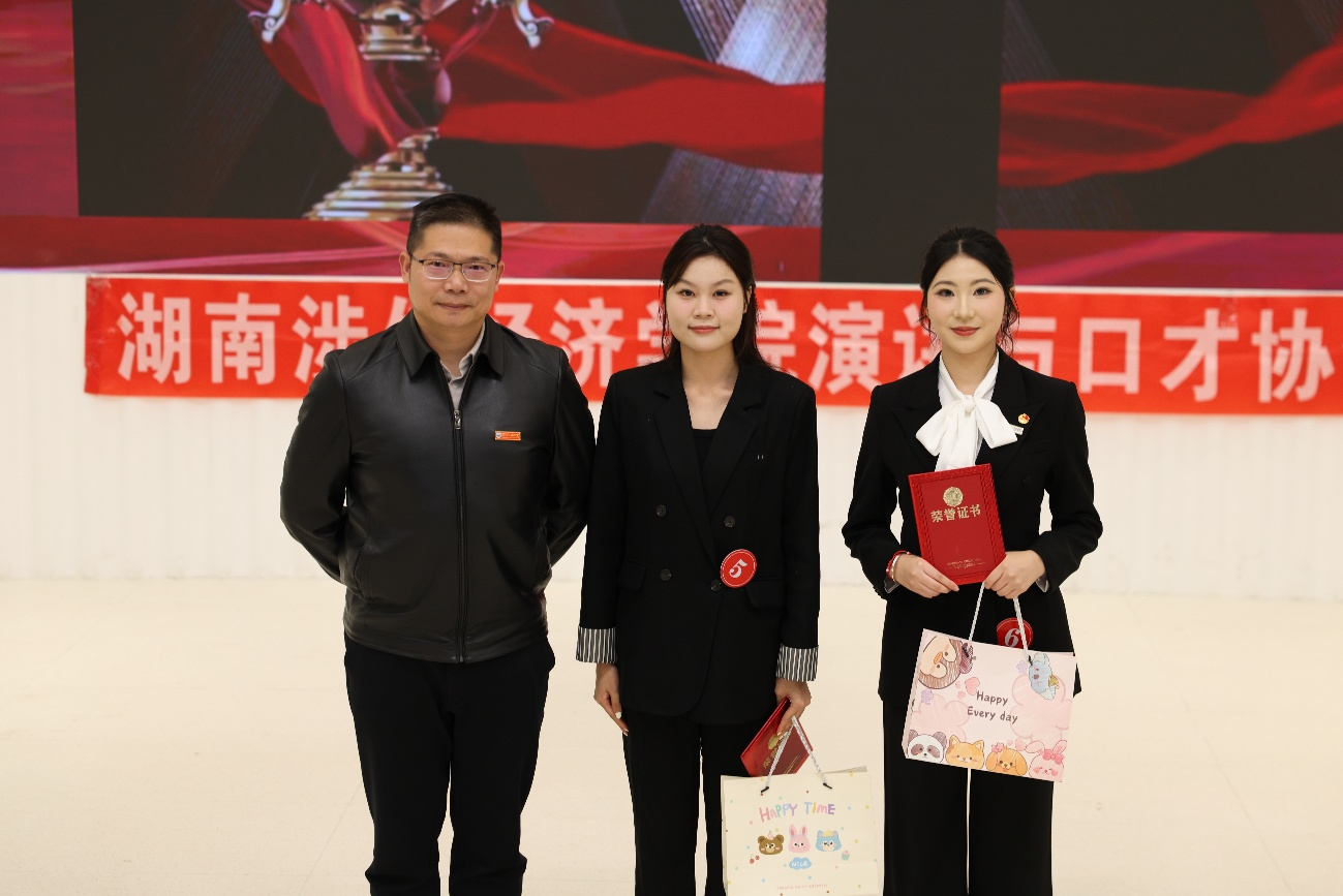 比赛尾声,激动人心的颁奖环节如期而至。经评委团综合评审,市场营销2502班戚晟康凭借出色表现斩获一等奖;法学2403班肖薇、音乐2505班李玉荣获二等奖;舞蹈2503班成佳航、法学2403班乔乔、汉语2411班曾楠、数据2401班刘婕、软工2501班郭子怡喜获三等奖。与会领导为荣获一、二、三等奖的选手颁发荣誉证书与纪念奖品,获奖选手与指导老师、工作人员合影留念,镜头定格下一张张青春洋溢的笑脸。