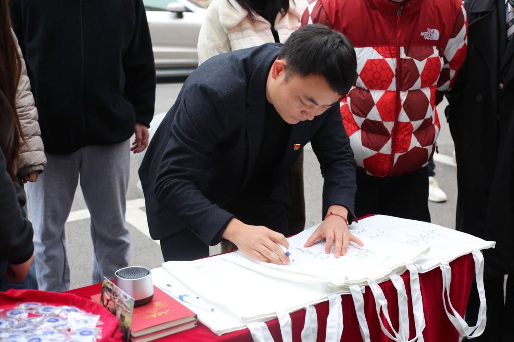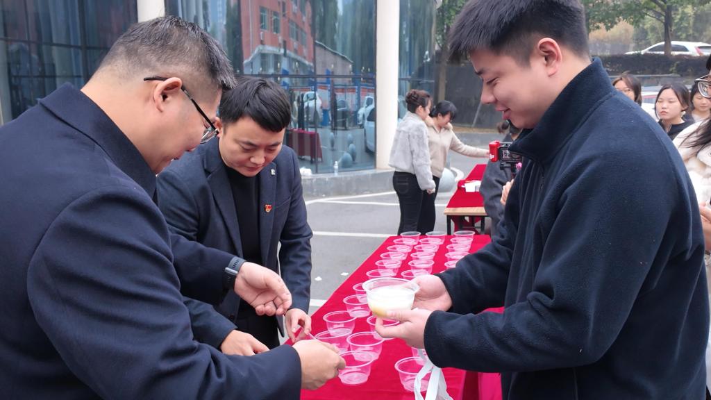 题字祝福环节成为活动的暖心亮点,人文艺术学院教师在文创收纳袋上郑重写下“一战成硕”、“金榜题名”、“前程似锦”等真挚寄语,笔墨间凝聚着对学子的深切厚望。人文艺术学院院长李向明、党总支书记马尚奇亲手将写满祝福的收纳袋递至学子手中,鼓励大家以坚定信念冲刺终点、以从容心态迎战考场。与此同时,老师们在长桌旁细心分装热汤圆,不仅驱散了冬日的严寒,更传递着学院的温暖关怀,让学子们在紧张备考中感受到满满的归属感与幸福感。