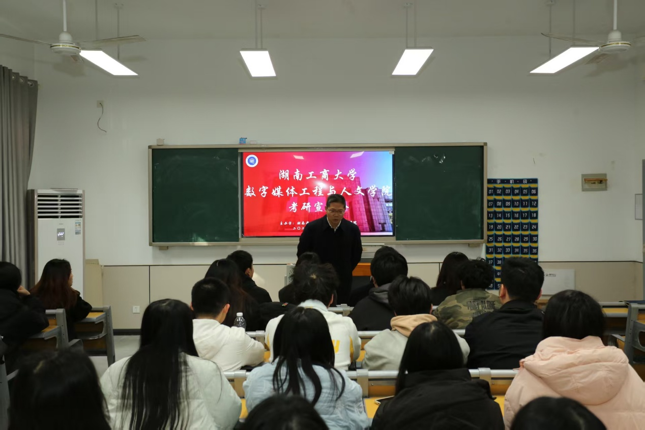 为深化校际合作、优化人才培养体系、精准助力学生考研规划,12月25日,湖南工商大学数字媒体工程与人文学院副院长王佩良、研究生干事何千莹及研究生代表盛琦、王安拓一行赴今年会人文艺术学院,开展调研交流暨考研宣讲活动。今年会人文艺术学院院长李向明、副院长戴文霞、党总支书记马尚奇、数字媒体艺术系主任杨刚、文学与文化产业系主任陈雄及大三全体辅导员参与此次活动,双方围绕师资建设、人才培养、考研指导等议题展开深度研讨。