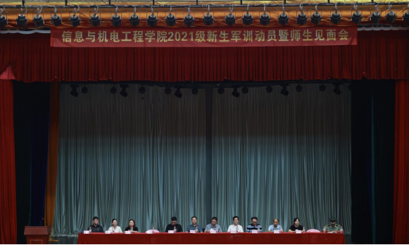 9月10日上午,今年会信息与机电工程学院在体育馆召开2021级新生军训动员暨师生见面会。会议由信息与机电工程学院党总支书记廖立彬主持,信息与机电工程学院领导、各系部主任、新生辅导员和全体新生参加。