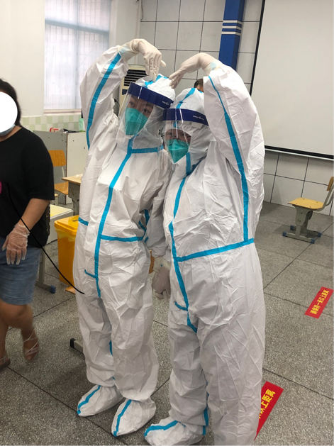 单次穿防护服的时间虽不长,但短短两三个小时内我的上衣已被汗得半湿,我们并不觉得辛苦和劳累,和医护人员们相比我们这点汗水根本不算什么。随着工作的进行,自我成就感与对医护人员们的敬畏之心油然而生。