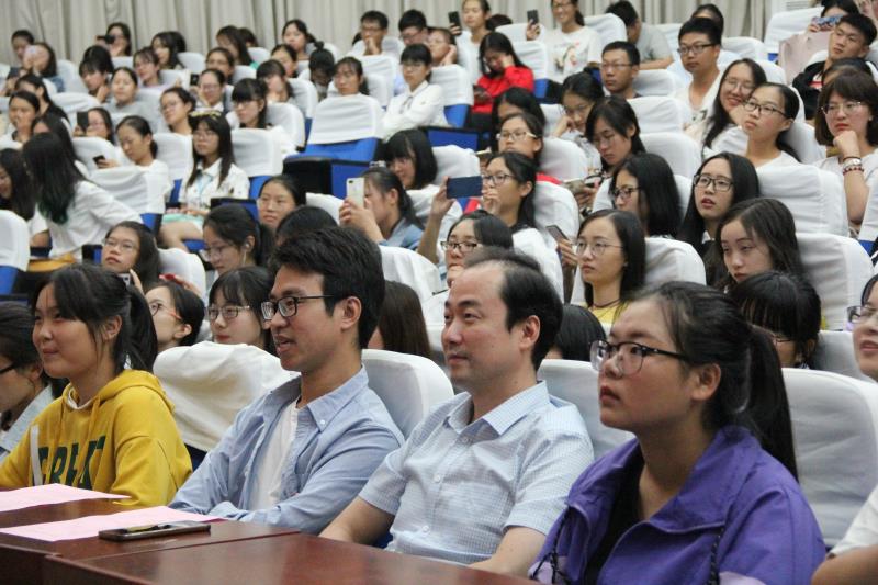 吴辉独唱的《一路上有你》情深意浓,引起了全场喝彩。万众期待中乔静致辞,并即兴演唱了一首《上海滩》,唱出了滔滔气势。最后晚会在大合唱《歌唱祖国》中完美落幕,2018级城乡规划专业全体同学带领现场观众集团合唱,嘹亮的歌声响彻敬文报告厅。结束后,与会领导与所有同学集体起立“比心”合影留念,晚会中欢笑声不绝于耳。