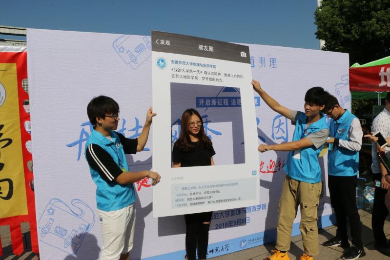 早在新生正式报到之前,地旅学院就发挥新媒体优势,在学院官方微信公众号中发布了详细的报到流程与新生入学贴士,图文并茂、详实生动。同时,学院各专业学生通过微博和QQ群,在线上实时为新生提供讯息、答疑解惑。此外,学院挑选了一批用心尽责的志愿者,并对志愿者进行培训,合理分组,具体分工。线上线下通力合作,使得迎新现场更加有条不紊。