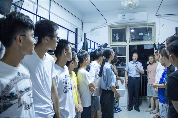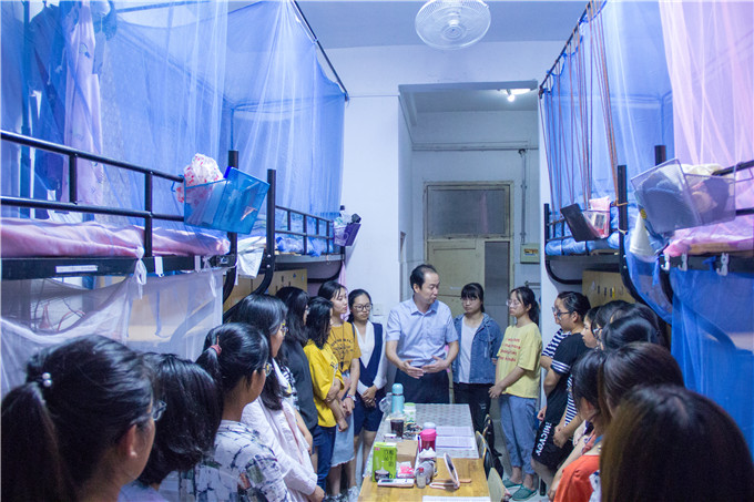 本网讯(地旅学院 孙夏路遥)中秋情系新生,师生共话佳节。适逢中秋佳节来临之际,为加强新生寝室管理,及时了解新生思想状况,帮助同学们尽快进入大学状态。2018年9月22日晚,永利集团3044官网欢迎您党委副书记乔静带领各专业新生辅导员深入寝室,开展新学期暨中秋佳节走访慰问工作。