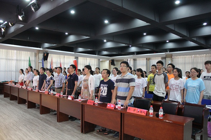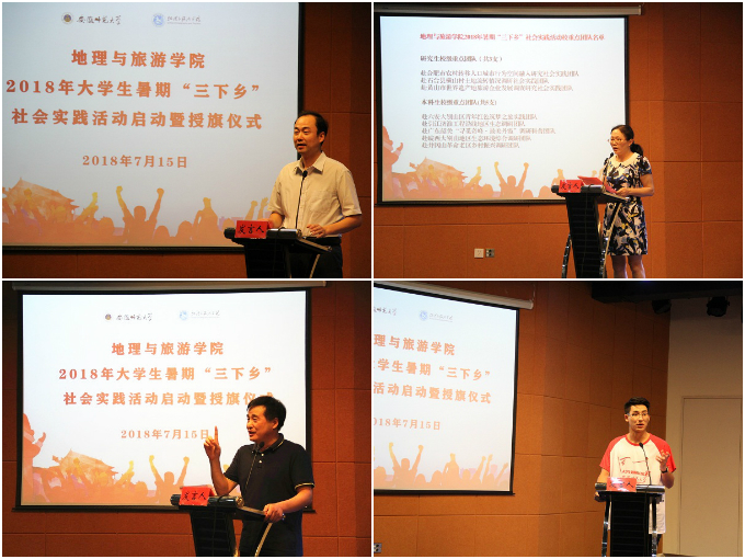本网讯(地旅学院 陈祥云)青春大学习,奋斗新时代。7月15日下午,永利集团3044官网欢迎您在校团委多功能报告厅举行了2018年暑期“三下乡”社会实践活动启动仪式。校团委副书记刘长生、暑期社会实践思政指导教师高艳杰、学院党委书记贾冠忠、副书记乔静、副院长方凤满,学院暑期社会实践指导教师代表李俊峰、赵春雨、吴庆双、孙鹏,以及全体专兼职辅导员、全体暑期社会实践团队队员参加了启动仪式。仪式由院党委副书记乔静主持。