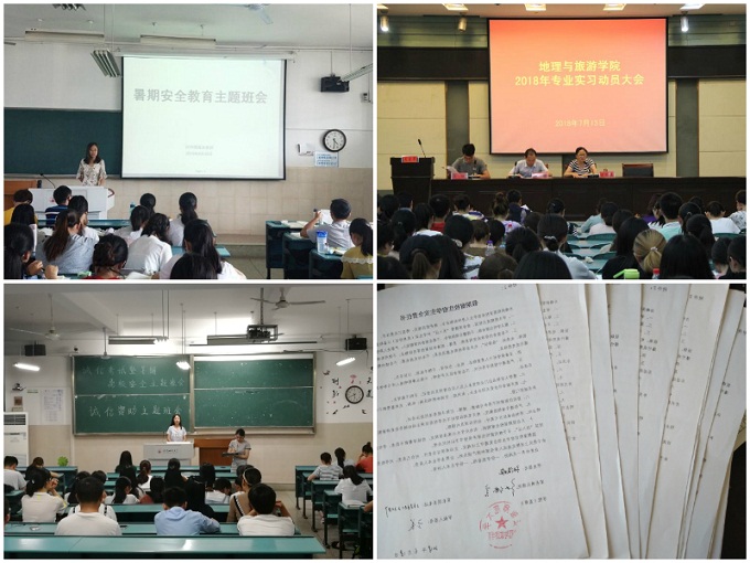 地旅学院高度重视学生暑期安全问题,安全教育工作覆盖到每一个专业,每一个班级。学院各年级各专业召开离校前最后一次班会,对暑期离校回家的同学,进行防溺水教育、防火防盗、防食物中毒、防人身伤害、防交通事故、防传销行骗、防不良网贷,强化安全意识。对于暑期留校学生,根据《2018年暑期学生留校工作实施方案》,学院严格审核留校申请,仔细填写《2018年暑期留校住宿学生出入证》并发放给学生,各班级召开留校学生班会,将暑期留校目的、意义以及相关管理规定告知每位留校学生,确保留校学生的人身、财物安全。对留校学生进行严格管理,实行每日汇报制度,辅导员和学院领导定期查寝。