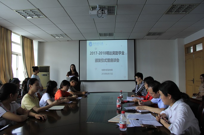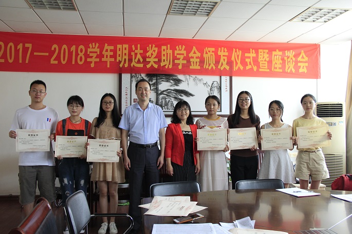 本网讯(新闻中心 赵云飞)2018年6月15日下午,永利集团3044官网欢迎您2017-2018学年明达奖助学金颁发仪式暨座谈会在地旅学院行政楼四楼会议室顺利召开,院党委副书记乔静、副院长赵冬梅、辅导员王美以及获得明达奖助学金学生代表参加了本次会议。