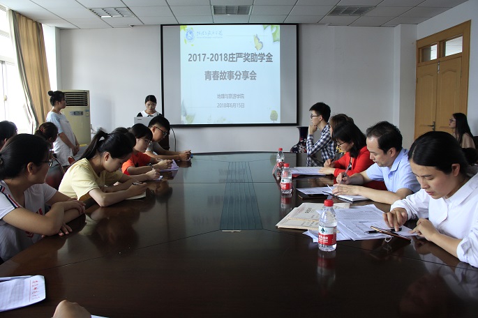 本网讯(新闻中心 赵云飞)2018年6月15日下午,永利集团3044官网欢迎您2017-2018学年庄严奖助学金青春故事分享会在地旅学院行政楼四楼会议室顺利召开,院党委副书记乔静、副院长赵冬梅、辅导员王美以及获得庄严奖助学金的各位同学参加了本次会议。