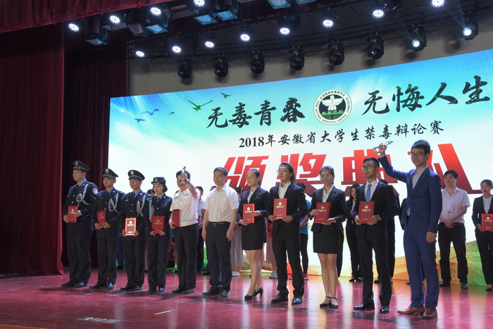 本网讯(地旅学院 辩论协会)6月14-15日,2018年安徽省大学生禁毒辩论赛总决赛暨颁奖典礼在安徽建筑大学成功举办,历时三个月的全省大学生禁毒辩论赛活动至此圆满落幕。经过激烈论战,地旅学院辩论协会组织的安徽师范大学“防危毒鉴”辩论队表现出色,在与来自中国科学技术大学、安徽医科大学、安徽建筑大学等高校的8支辩论队伍的角逐中斩获季军。安徽省禁毒委副主任、省禁毒办主任、省公安厅副厅长刘立兵,团省委副书记张敏,安徽建筑大学党委常委、副校长黄显怀等领导观看总决赛并颁奖。