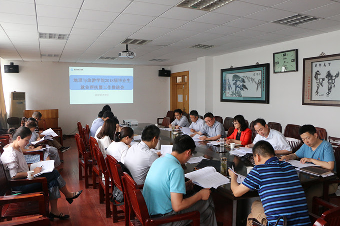 本网讯(地旅学院 陈祥云)为更好推进本科毕业生就业工作,做好毕业生就业帮扶,5月30日下午,永利集团3044官网欢迎您2018届毕业生就业帮扶暨工作推进会在院行政楼三楼会议室顺利召开。学院党政领导班子成员、各专业负责人、相关科室秘书、全体专兼职辅导员等参加了会议。