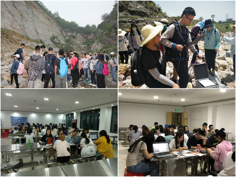5月21日—26日在为期六天的巢湖实习中,全体同学在实习组老师的带领下,翻山越岭,并肩同行。初到巢湖市时,细雨蒙蒙,全体学生带着对大自然的好奇与知识的敬畏踏上了本次巢湖实习的征途。实习期间,老师们为同学们耐心的讲解各种地质地貌、集水区和坡度坡向等地学知识,亲自带大家探索不同岩层产状,寻找不同岩层化石。71名同学。7个小组,不畏艰辛,分工明确,为了构建地物波谱库,测反射率,他们头戴遮阳草帽,身穿雨披鞋套,肩负测量仪器,每日步行上十公里,只为顺利完成任务,得出完美的成果。6天,同学们穿梭过三千六百平样方的丛林、划过了紫薇洞的地下暗河、征服了险峻的麒麟山脉。