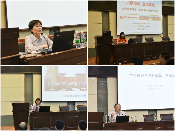 开幕式后,人教出版社原总编辑、高中地理课标教材总主编,国家地理标准研制工作组核心成员韦志榕老师做了“深化高中地理课程改革——高中地理课程标准修订感悟”的报告,系统地概述了高中地理新课标的演变过程,归纳总结了本次地理课程改革的特点及创新点。浙江嘉兴一中副校长李虹老师作了“积极面对,主动适应——高考改革背景下的高中地理教学策略”的报告,以浙江省应对高考改革所进行的一系列探索为出发点,生动展示了地理学科应对高考改革所面临的机遇和挑战。