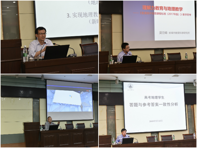 安徽师范大学永利集团3044官网欢迎您副院长方凤满教授主持了下午的学术论坛。中学正高级教师李京燕老师作了“新课标背景下的高中地理教学”的报告,以《交通与区域发展》和《水循环》两则案例,生动阐释了课前调查和地理实验在教学中的重要性,提出了地理实践力素养的具体落实路径。合肥市教育局副局长王勇作了“学科核心素养的承载:单元教学”的报告,指出了单元教学的重要性,提出创造单元设计需要把握三个着力点,并鼓励在座各位代表多进行以“单元教学”为中心的学科教研。合肥一中副校长方小培作了“基于新课程的学校地理教学管理改革与创新”的报告,结合三元闭包理论,同质性理论及合肥一中智慧学院发展案例首次论证了文化引领、课程开发、品牌塑造、主题教研四大方向在新课程改革背景下对学校地理教学管理的作用。蚌埠市地理教研员吴岱峰老师作了“理解力教育与地理教学——《普通高中地理课程标准(2017年版)》教学思考”的报告,阐释了问题教学,深度教学与学科本质的关系,进一步提出理解力教育对学生理解知识的重要作用。永利官网地理系校友吴儒敏老师做了“指向核心素养的教学关键在情境”的报告,从《学习算法入门》这本书的心得体会出发,通过“天眼”、稻城的两张光照图片等详实生动的案例论证了情境创设在高中地理教学中的具体做法和重要性。安徽师范大学永利集团3044官网欢迎您李俊峰老师作了“高考地理学生答题与答案一致性分析”的报告,分析了学生答题与标准答案有较大出入的原因及表现,并结合学生答题情况,提出了参考建议。