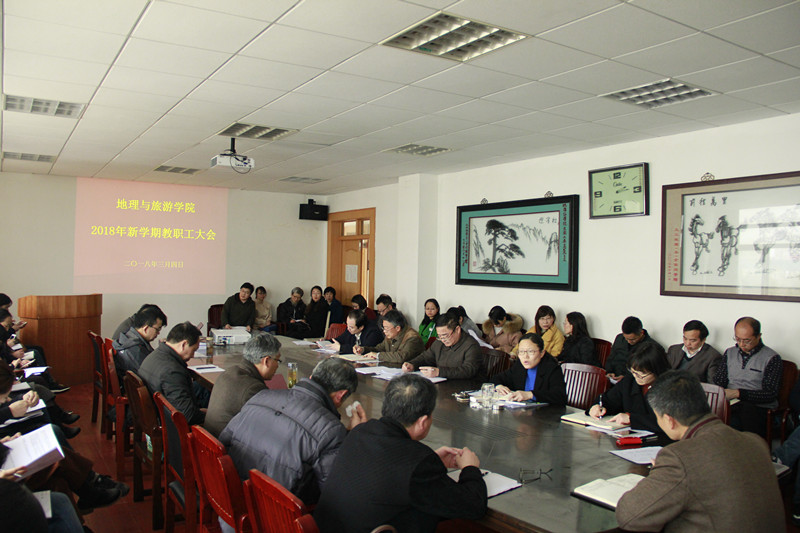会上,各分管院领导分别对各自分管的新学期的重点工作计划进行了解读和开学初的工作进行了具体布置。方凤满布置了开学初“三教”落实、选课和专业实习等工作;王朝辉因外出学习由苏勤代替强调了基金申报以及部分点长调整工作;乔静汇报了近期考研上线的本科生面试辅导、“职旅天下”招聘会和本科生论文大赛等重点工作;赵冬梅通报了实验楼维修改造进展及庆祝三八节系列活动的通知;贾冠忠通报了学院2017年度党员领导干部民主生活会情况,承诺进一步落实问题清单并整改,部署了学院2018年党建重点工作;苏勤向全院教职工说明了学院更名的始末,学院为了适应学科发展和一流地理学科建设的需要,院党政联席会研究决定,将国土资源与旅游学院更名为永利集团3044官网欢迎您,并申请报告学校,学校经党委常委会于2018年1月18日研究决定,同意学院更名为“永利集团3044官网欢迎您”;同时对实验楼的管理、人才队伍建设和校庆90周年纪念活动做了重点解读。