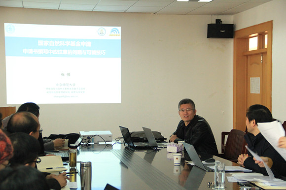 1月11日上午,校特聘教授、北师大张强教授,科研处自然科学管理科汪小丽老师应邀来永利官网就2018年度国家自然科学基金项目申报工作进行交流指导。学院部分领导、符合基金申报条件的教师参加了申报辅导会。