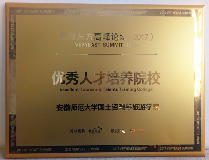 本网讯(国旅学院 赵 将)2017年11月3日,由旅游业界著名专业招聘平台最佳东方主办,最佳东方HR公社、先之教育、迈点、乔邦猎头联合协办的“2017最佳东方高峰论坛暨第四届旅游服务业最佳雇主颁奖盛典”在杭州未来科技城国际会议中心盛大启幕。永利官网国旅学院获得“优秀人才培养院校”称号,国旅学院党委副书记乔静、旅游管理专业本科生辅导员吴燕、赵将受邀参会并接受牌匾。