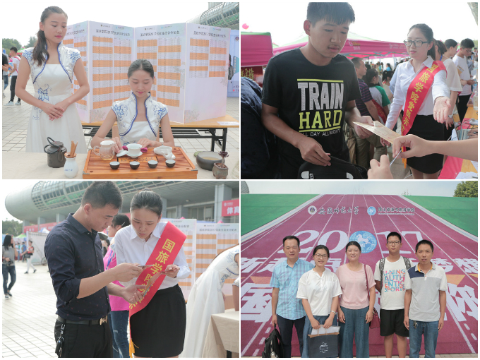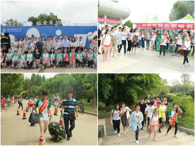 为迎接2017级新生,旅游爱好者协会和相关社团以及学生会大艺团联合推出花津校区“游校园精品活动”,让新生在熟悉校园的同时充分体验师大的魅力。导游手拿绿色小旗,带领新生与家长于皖风诗韵看映日荷花,于图书馆品茶韵幽香;在西门赏舞狮,在球场看轮滑……迎新导游们耐心讲解,热情介绍,带领新生和家长们熟悉校园环境,介绍师大校史校情。在为新生与家长展现校园美景的同时,他们自己也化身为师大的一道动人的风景线。