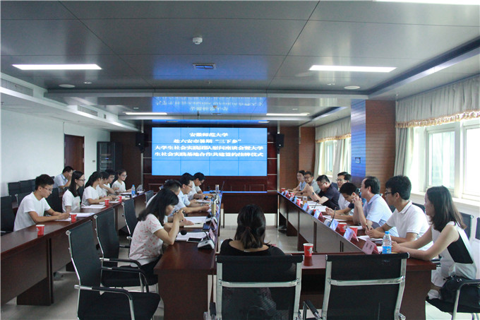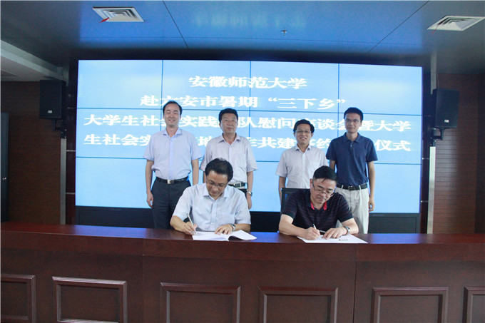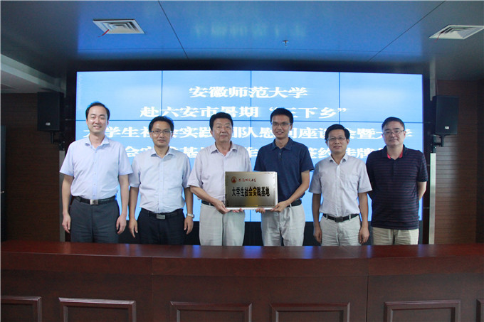 本网讯(国旅学院 赵 将)7月18日上午,安徽师范大学国土资源与旅游学院与六安市旅游委员会在六安市旅委会议室举行大学生社会实践基地合作共建签约、挂牌仪式。六安市旅游委员会主任梁修存、六安市旅游委员会党组书记漆学敏、校党委学工部部长、学生处处长台启权、校团委副书记汪凯、国旅学院院长苏勤、院党委副书记乔静出席仪式,六安市旅游委员会、永利官网国旅学院相关工作人员和永利官网赴六安市金寨县革命老区红色旅游资源与旅游精准扶贫调研团队全体实践队员参加了仪式。仪式由六安市旅游委员会主任梁修存主持。