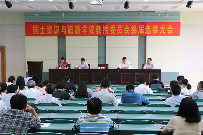 大会审议并通过了《国土资源与旅游学院教授委员会换届选举办法(草案)》、《新一届教授委员会建议人数和候选人名单》、《教授委员会委员建议人选名册》和总监票人、总计票人、监票人、计票人建议名单。大会以无记名投票方式选举王朝辉、方凤满、苏勤、杨兴柱、杨效忠、麻金继、曹卫东、焦华富、程久苗九位同志为新一届教授委员会委员。