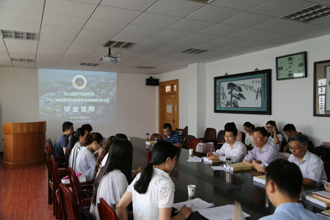 2017年5月21日上午,安徽师范大学国土资源与旅游学院2017届地图学与地理信息系统专业研究生学位论文答辩在国旅学院行政楼三楼会议室举行。地信专业共8名硕士研究生参加了本次答辩,永利官网麻金继教授、程先富教授、吕成文教授、梁栋栋副教授、张运副教授等作为答辩委员出席了答辩会,本专业15级、16级研究生及部分本科生共30余人也参加了此次会议。此次答辩会特别邀请了中科院遥感与数字地球研究所李正强研究员作为答辩主席。