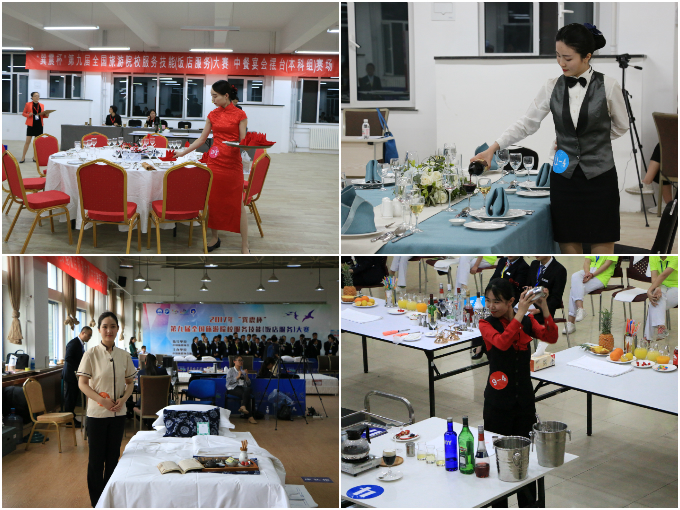 全国旅游院校技能大赛连续九年历经磨砺,已成为我国旅游教育界规模最大、层次最高、赛项最全的竞赛品牌。随着各项赛事的有序开展,来自全国30余个省(自治区、直辖市)的256所本科院校、高职高专院校和中职学校的789名选手展开了激烈比拼。本次比赛设中餐宴会摆台、西餐宴会摆台、中式铺床和鸡尾酒调制四个项目,每个赛项分别包括综合知识理论考核、现场操作和英语水平测试三个环节,11个赛场同时开赛。经过三天激烈的角逐,国旅学子最终获得了中餐宴会摆台(本科组)二等奖、西餐宴会摆台(本科组)二等奖、中式铺床(本科组)三等奖和鸡尾酒调制(本科组)优胜奖的不俗战绩,也是永利官网在该项赛事取得的最好成绩!