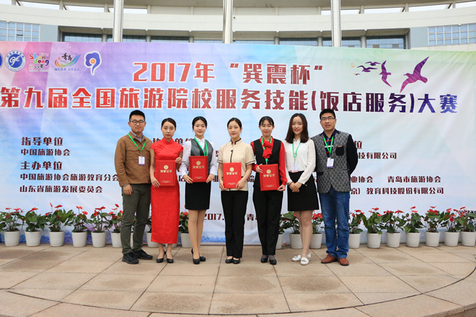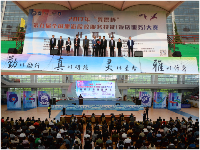 本网讯(国旅学院 赵将)“大赛点亮人生 技能成就梦想”。5月6日至5月9日,由中国旅游协会旅游教育分会和山东省旅游发展委员会联合主办,青岛市旅游发展委员会协办、青岛酒店管理职业技术学院承办的2017年“巽震杯”第九届全国旅游院校服务技能(饭店服务)大赛在青岛举行。中国旅游协会副会长、秘书长张润钢,山东省旅游发展委员会副主任岳滨,山东省商业集团总公司党委常委、董事李林,青岛市旅游发展委员会主任崔德志,中国旅游协会旅游教育分会副会长郑向敏、秘书长刘莉莉、副秘书长彭青,北京巽震数码科技有限公司总经理张博,青岛酒店管理职业技术学院党委书记李达、院长姜玉鹏等各级领导和嘉宾受邀出席开幕式并发表重要讲话。