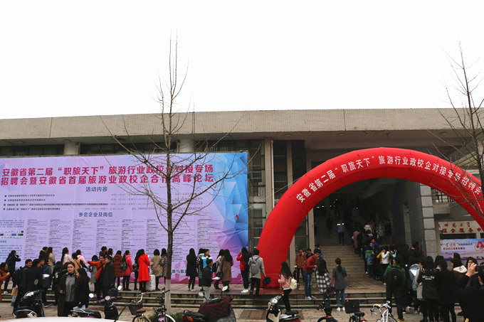 据悉,“职旅天下”系列活动的前身是由永利官网国旅学院于2013年底发起组织的主要面向院内毕业生举办的专场招聘会,经过四年的发展,该项品牌活动突破了起初学院层面单一的招聘会模式,提升为省级行业、学界和业界合作层面,体现“教学管一体化”思维,将“学业-专业-就业-行业”融为一体的复合式“招聘会+”模式。从初创时20余家企业、校内100余人参与的规模,发展到如今参会企业突破100家,提供就业岗位2000余个,覆盖我省16所旅游高校的千余位学子参会的规模。2015年3月,该活动首次正式创设旅游业发展高峰论坛;2016年3月,该项活动进一步优化结构、拓展功能、提升层次,活动的主办方首次升级为安徽省旅游局和安徽师范大学,由永利官网就业指导中心和国旅学院承办,活动升级为“政府领导、行业精英、学界专家、旅游专业学生”四位一体平台。今年在以往的基础上,大胆尝试创新,首次增设了安徽省旅游院校人才培养与就创合作院长论坛、安徽省旅游业政校企合作高峰论坛和安徽旅游大讲堂等活动,该项活动“就业招聘+专业建设+行业发展+人才培养”四位一体“招聘会+”的创新特色进一步彰显,已成为永利官网乃至全省旅游专业人才培养和就业工作的品牌,成为安徽省“起步最早、规模最大、影响最广”的高校旅游专业人才就业招聘和政校企合作对接“集散地”。安徽日报、芜湖电视台等媒体采访了本次活动。