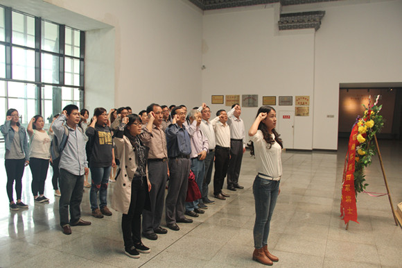 在新四军史料陈列馆,院党委书记贾冠忠和院长苏勤代表国旅学院党委向无名烈士敬献花篮,表达了对烈士的敬仰和追念。全体党员面对鲜红的党旗,高举右手,齐声重温铿锵恢宏的誓词,宣誓声久久激荡在每位党员的心中,激励着同志们增强党员意识和党性修养,永葆共产党人纯洁性。