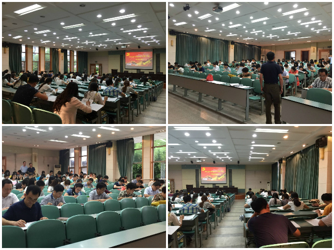 本网讯(国旅学院 金高洁)为扎实开展“两学一做”学习教育,2016年6月24日下午14:30国旅学院组织师生党员200余人在实验楼101教室,参加了党章知识测试。