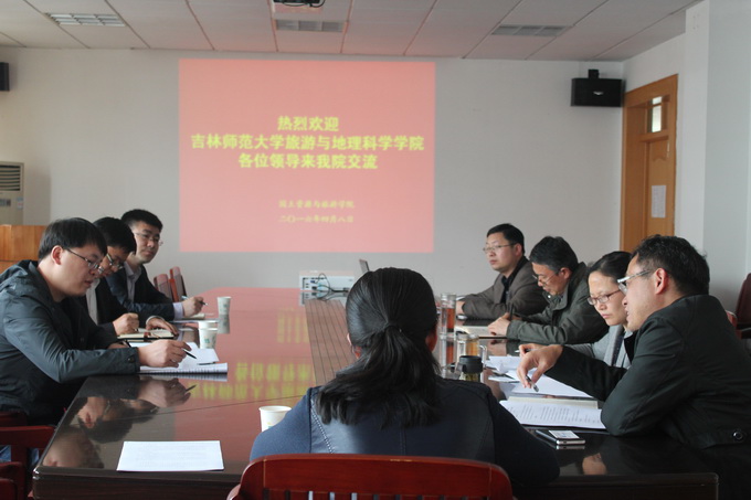 4月8日下午,吉林师范大学旅游与地理科学学院副院长李国柱一行来永利官网交流,学院党委书记贾冠忠、教学副院长方凤满及旅游与地信专业负责人参加了交流活动。