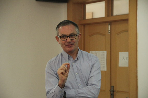 首先,Trevor Hoey教授详细地介绍了研究区的概况、河流沉积物的形态、特征以及河流对于不同类型沉积物迁移的机制;然后,利用视频的方式,直观的展示河流沉积物的迁移过程;最后,总结了河流沉积物的积累、迁移、对河流阶地的侵蚀、堆积以及河流对沉积物搬运之间的相互关系。报告的互动环节,与会师生围绕相关的学术问题踊跃提问,Trevor Hoey教授一一认真作答。讲座在热烈的掌声中圆满结束。