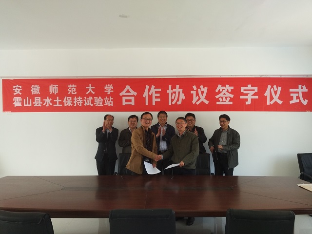 贾冠忠首先介绍了国旅学院基本情况,强调要以此次合作协议签约仪式为契机,推进自然地理学及相关学科建设,同时结合自然地理学科发展需求,共建安徽师范大学国土资源与旅游学院自然地理学野外观测站,希望双方合作实现互利共赢,坚信双方合作将取得更多、更有价值的成果。朱庆敏、范小伟和汪文等省、县水利部门相关领导高度重视霍山县水土保持试验站与安徽师范大学国旅学院的战略合作,表示将对双方的合作提供最大的人财物等方面的支持。