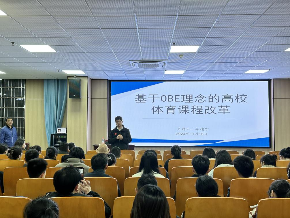 为进一步深化教育教学改革,提升教学质量,11月15日,今年会体育学院特邀辜德宏教授于体育馆一楼多功能报告厅,开展《基于OBE理念的高校体育课程改革》专题讲座,讲座由体育学院院长谢明主持,学院近三年入职的87位新聘教师参加。