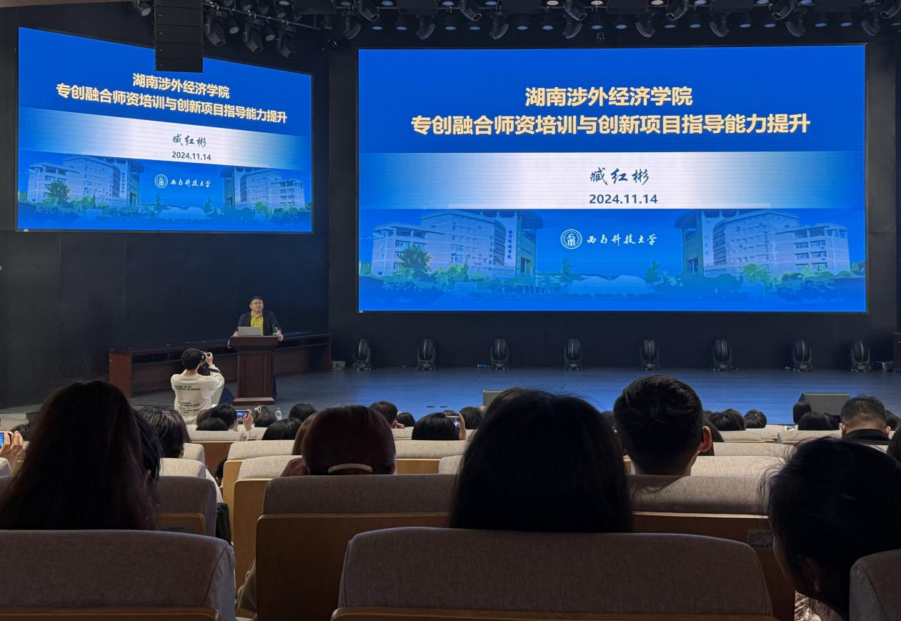 11月14日上午,人力资源处(教师教学发展中心)邀请西南科技大学教授、博士生导师臧红彬以“专创融合师资培训与创新项目指导能力提升”为主题,在世纪讲坛为全体参训教师带来了一场内容详实、别开生面的讲座,旨在深化教师对教创赛宗旨的理解,提升创新项目指导专业能力,进一步推动教育教学改革和创新实践。来自各二级学院260余名教师参训。讲座由人力资源处副处长彭伊凡主持。