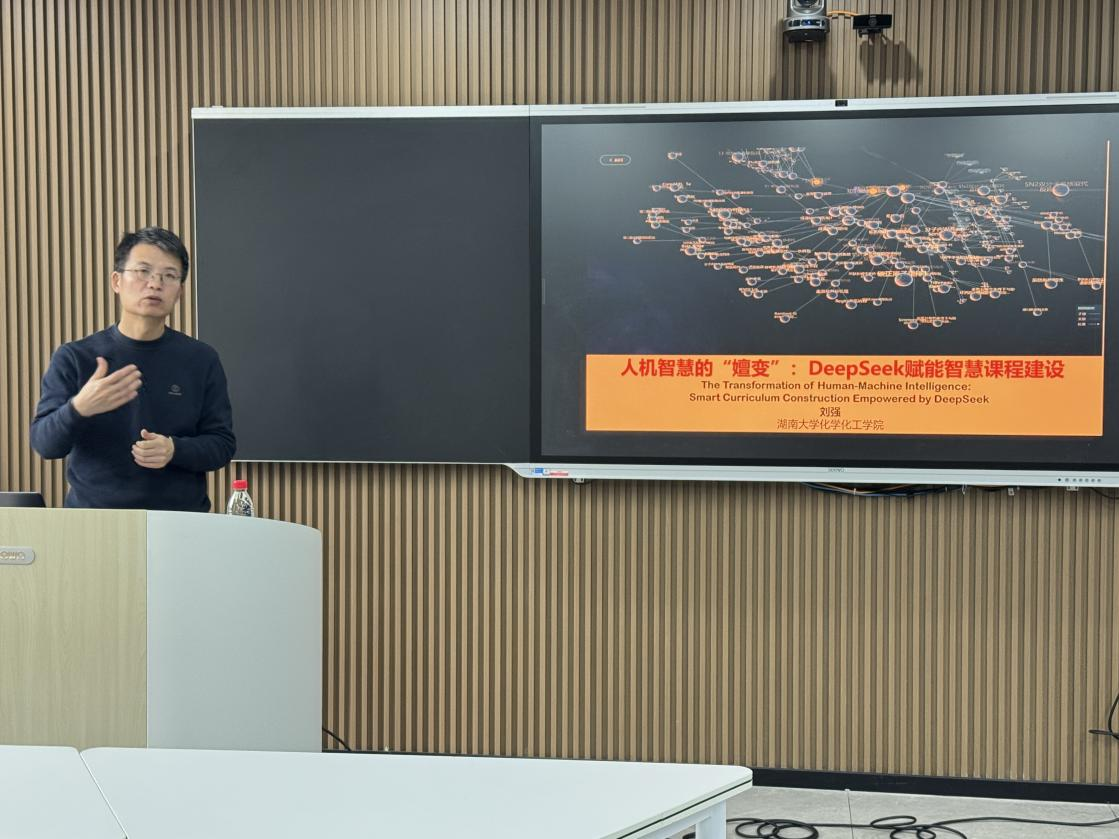 3月31日上午,人力资源处(教师教学发展中心)邀请湖南大学教授、工学博士,法国勃艮第大学博士后刘强教授在实训楼南510开展以“人机智慧的“嬗变”:DeepSeek赋能智慧课程建设”为主题的培训工作坊,来自各二级学院46余名教师参训。本次培训由人力资源处副处长彭伊凡主持。