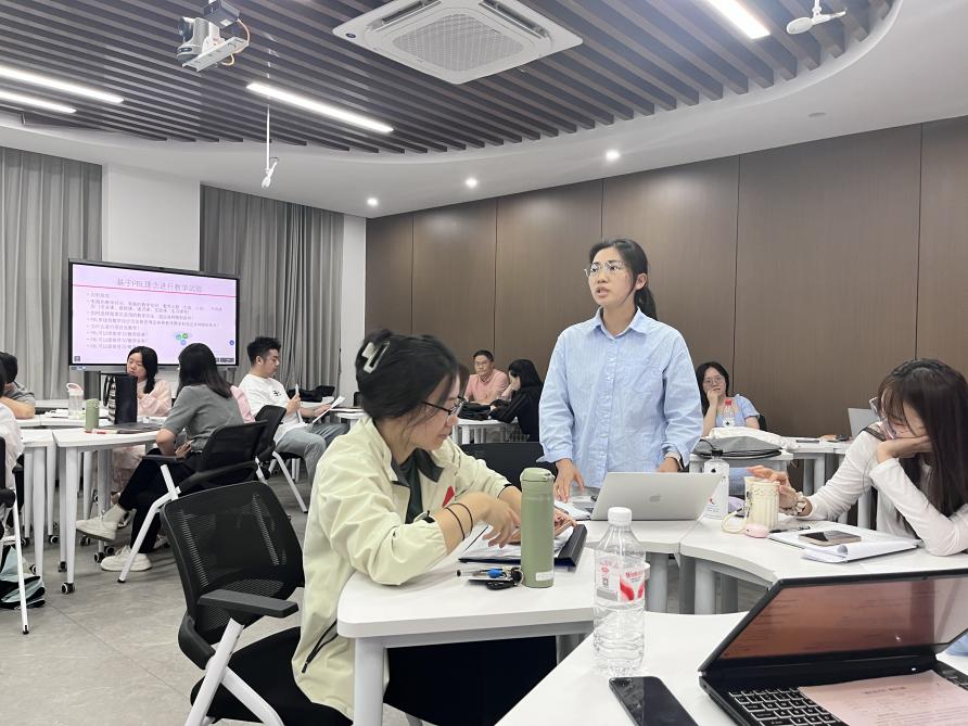 在实践环节,参训教师以每小组5人分组,对既有课程大纲进行解构与重构,运用PBL框架重新设计教学目标、内容与评价体系。郭教授强调:“PBL始于实践终于实践,需要教师坚定信念并持续学习。”他鼓励教师以设计思维推动教学迭代,共同构建“以学生为中心”的教育新生态。