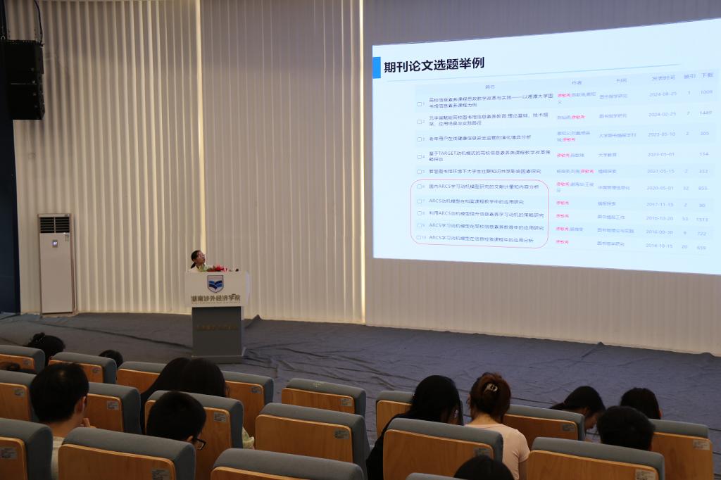 6月9日下午,今年会图书馆特邀湘潭大学副研究馆员、硕士生导师廖敏秀老师在学术讲堂为师生带来了一场主题为“文献获取与论文选题” 的精彩培训讲座,约200位师生参加了此次讲座。