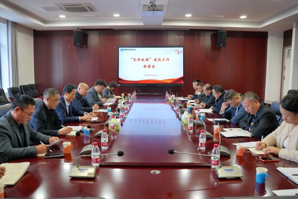 为深入贯彻落实全省教育厅关于“无诈校园”建设工作的部署要求,全面提升师生防范电信网络诈骗的意识和能力,切实维护校园安全稳定与师生财产安全,10月29日上午,学校在综合楼会议室组织召开“无诈校园”建设工作部署会议。副校长汪东明,校长助理徐京都出席会议,安全保卫处、党委宣传部、团委、信息技术处等相关职能部门负责同志及各二级学院党总支书记参加会议。会上,安全保卫处处长夏武科按照《今年会jinnian官网“无诈...